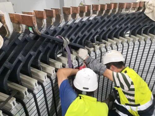 地下廠房內,安裝間的定子工位上線棒嵌裝工作正如火如荼地進行著,施工人員兩班倒,形成了既協作又比賽的局面。兩條母線洞內的封閉母線安裝有條不紊,已經分別完成工程量的70%和50%。副廠房內的電纜橋架安裝進展神速,一車車的橋架部件正在從設備庫房轉運進來。管路的配裝也在全面展開。中控樓的盤柜和變壓器安裝逐步就位,施工形象日新月異。
